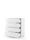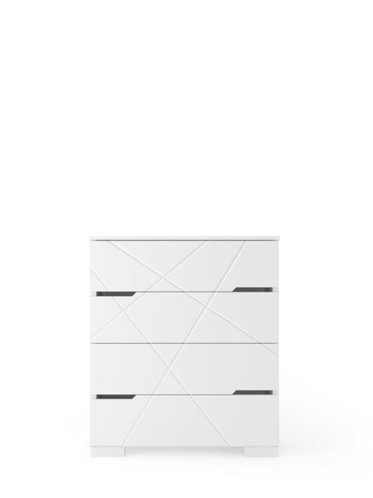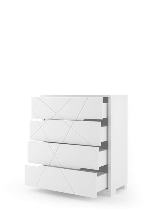 Dažyti fasadai su linijinėmis graviūromis. Korpusas pagamintas iš baltos spalvos laminuotos plokštės.