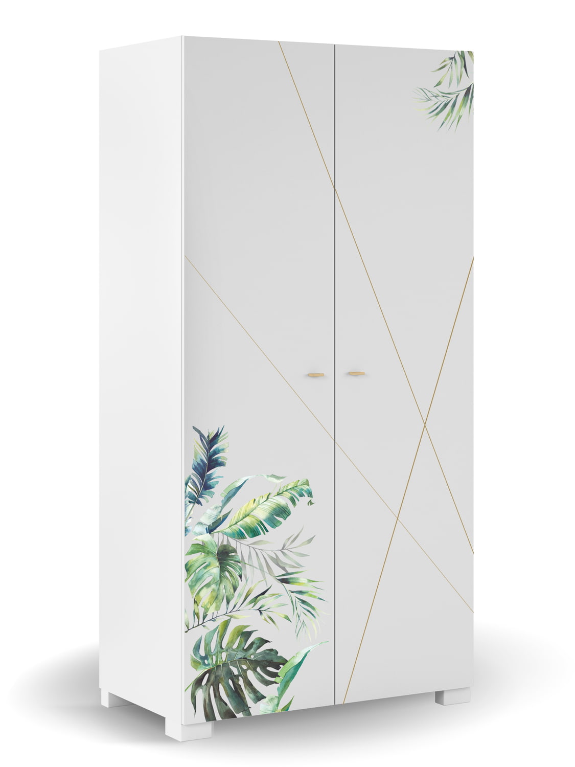 Baltos spalvos fasadai, papuošti žaliais lapais bei paryškinti blizgančiomis aukso linijomis ir rankenėlėmis. Korpusas pagamintas iš baltos laminuotos plokštės.