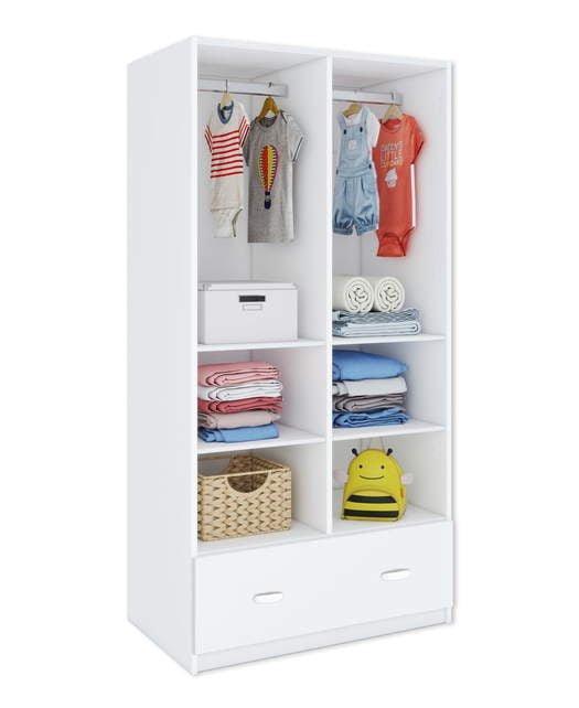 Dviejų durų spinta su dviem stalčiais. Fasadai dažyti Lenkijos alergologų draugijos (PTA) rekomenduojamais dažais ir sustiprinti UV šviesa. Baltos spavos korpusas. Pagrindinis kolekcijos akcentas - švelniomis spalvomis dažytos savanos gyvūnų graviūros.